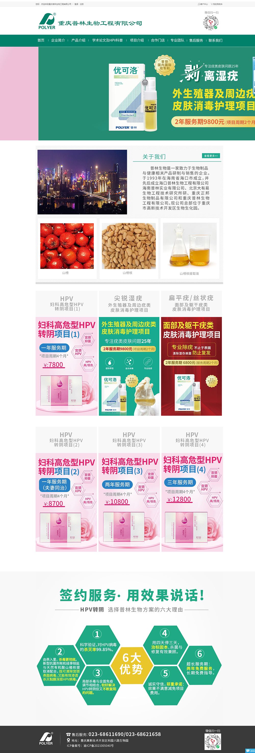 20多年来,公司重点专注于杀灭HPV病毒产品的研究和开发,采用克疣林专利技术[国际专利主分类号:A61K35/78;国家发明专利号:ZL 96 1 20687.X],生产出优可洛、克优林、适尤兢、可焱平等一系列专业清除HPV病毒、祛除疣体的优秀产品。