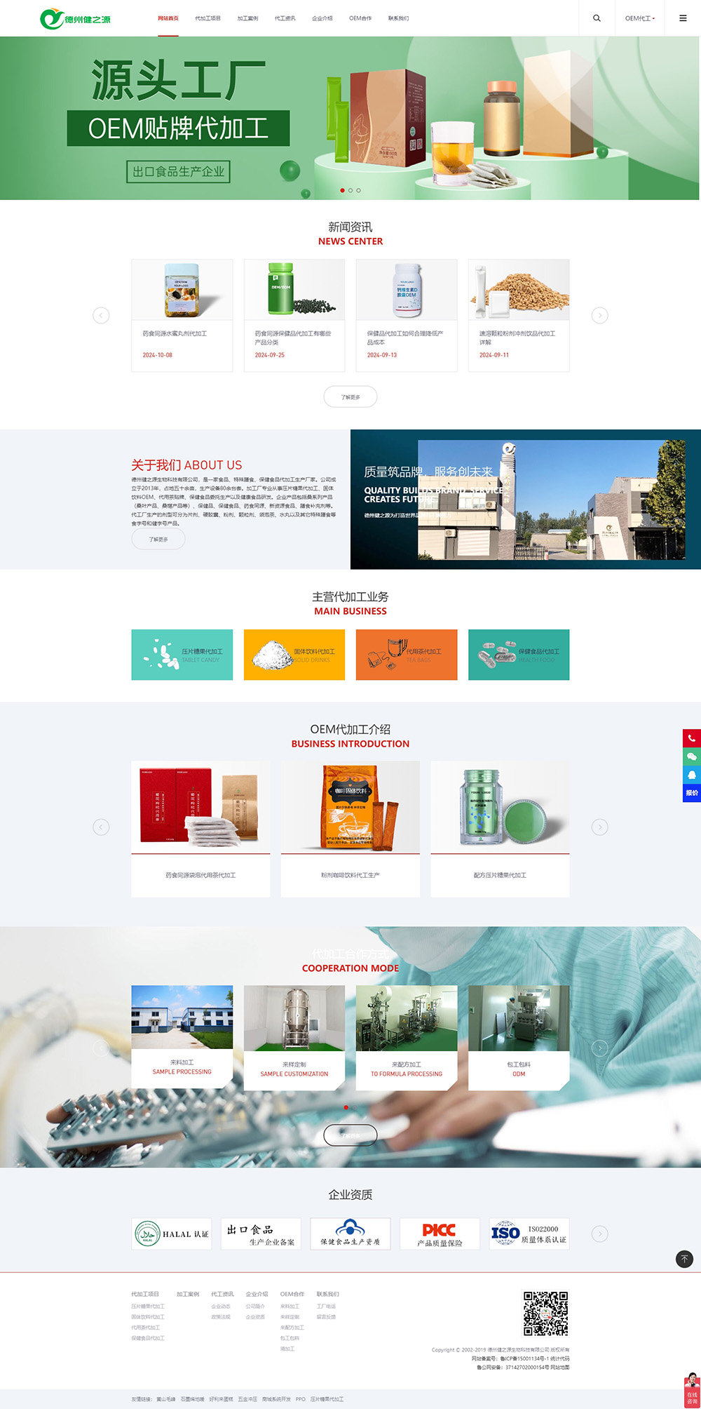 建站联系电话德州健之源生物科技有限公司,专注营养食品研发、生产近11年,是山东省专业从事压片糖果、固体饮料、代用茶、特殊膳食食品及保健食品等大健康产品代工项目的源头厂家,是拥有GMP、ISO22000、FDA认证的食品饮料OEM代加工厂。