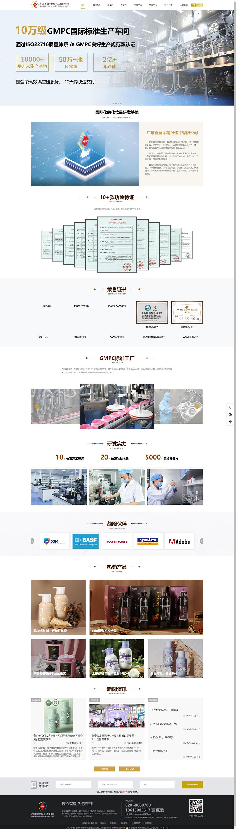 建站联系电话广东鑫莹荣精细化工有限公司创始于2009年,是一家集技术研发、产品生产、产品加工、品牌管理和电子商务为一体的、拥有完整产业链布局的综合性化妆品企业。