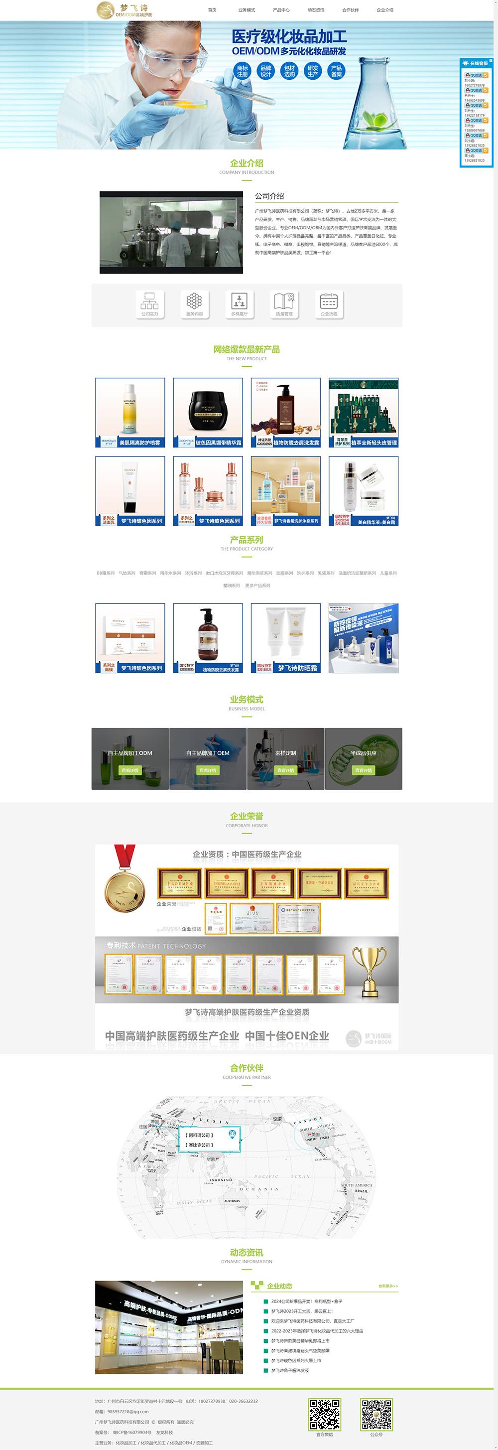 建站联系电话广州梦飞诗医药科技有限公司(简称:梦飞诗)、占地2万多平方米、是一家产品研发、生产、 销售、品牌策划与市场营销管理、国际学术交流为一体的大型股份企业、专业 OEM/ODM/OBM为国内外客户打造护肤高端品牌、发展至今、拥有中国个人护 理品最完整、最丰富的产品品类、产品覆盖日化线、专业线、电子商务、微商、 电视购物、直销等主流渠道、品牌客户超过6000个,成就中国高端护肤品类研发、加工第一平台!