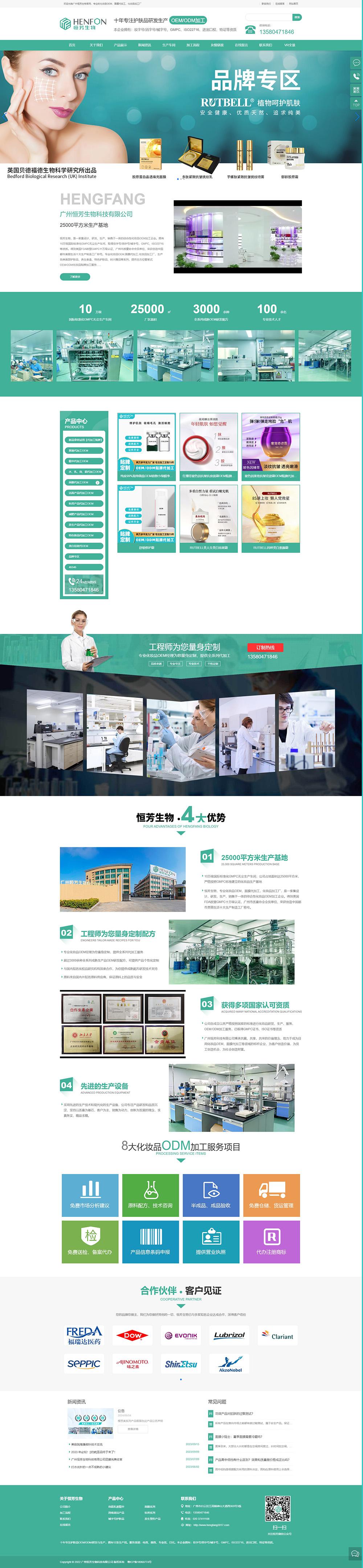 建站联系电话广州恒芳生物科技有限公司,简称恒芳生物,十年专注护肤品OEM/ODM/研发与生产,拥有12条生产线。
