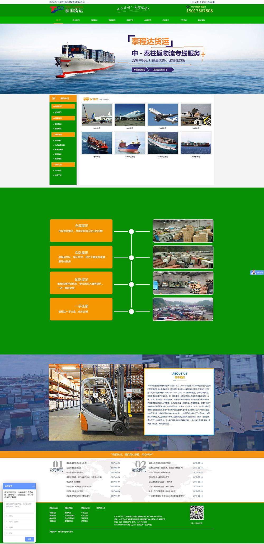 建站联系电话广州泰程达货运代理有限公司(简称:TCD-CARGO)成立于2012年 专业致力于在亚洲地区各国间提供全套运输服务,公司长期主营中国----泰国 海运和陆运 双清包税到门服务.公司不仅在泰国曼谷 ,中国广州、深圳、义乌、中山等城市建立了办事处及物流仓,在泰国曼谷组建了优秀的中、英、泰语操作、业务精英团队.其服务项目具体包括:仓储、拖车、报关报检,目的地清关、派送及代客采购等服务.为那些货量少,散货客户解决成本核算上的困扰.公司兼营:马来西亚专线、越南专线、柬埔寨专线、迪拜专线及中东各国空运海运双清业务,欧洲进口业务,速度快、时效稳定、安全。本公司以提供可信赖及有效率的服务,使客户得到最大的满意度为基本宗旨,同时我们还将扩展我们的服务地区及范围,以期能为更多的客户带来方便。 为了不断的提高员工的工作能力,管理团队对各岗位员工定期的加以考核,以此确保员工的服务品质与效率。秉承“高瞻远瞩,通达天下”的经营理念,可为客户量身定制物流解决方案,力争为客户提供最高效、最便捷、最优质、最安全的服务。