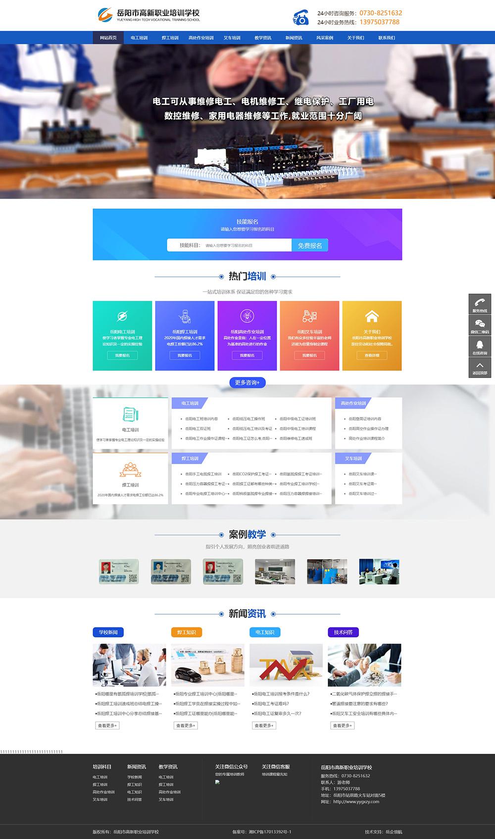 建站联系电话我校是经湖南省人力资源和社会保障厅、湖南省应急厅、岳阳市应急局批准,由岳阳市人力资源和社会保障局承办的单位,是全市下岗、失业人员和农村劳动力转移培训的定点机构。常年开设:电工、焊工、家电维修、手机维修、电脑维修、电子技术、厂内机动车辆(叉车、铲车、起重机、挖机)驾驶等热门短期培训专业。结业发证,包荐就业。附开设业余函授考证班,发全国通用职业资格证书、特种作业操作证IC卡。地址:岳阳市站前路235号黄金时代教育城。
